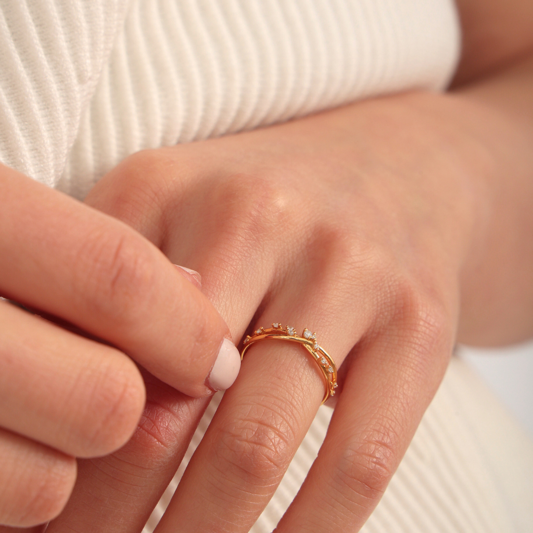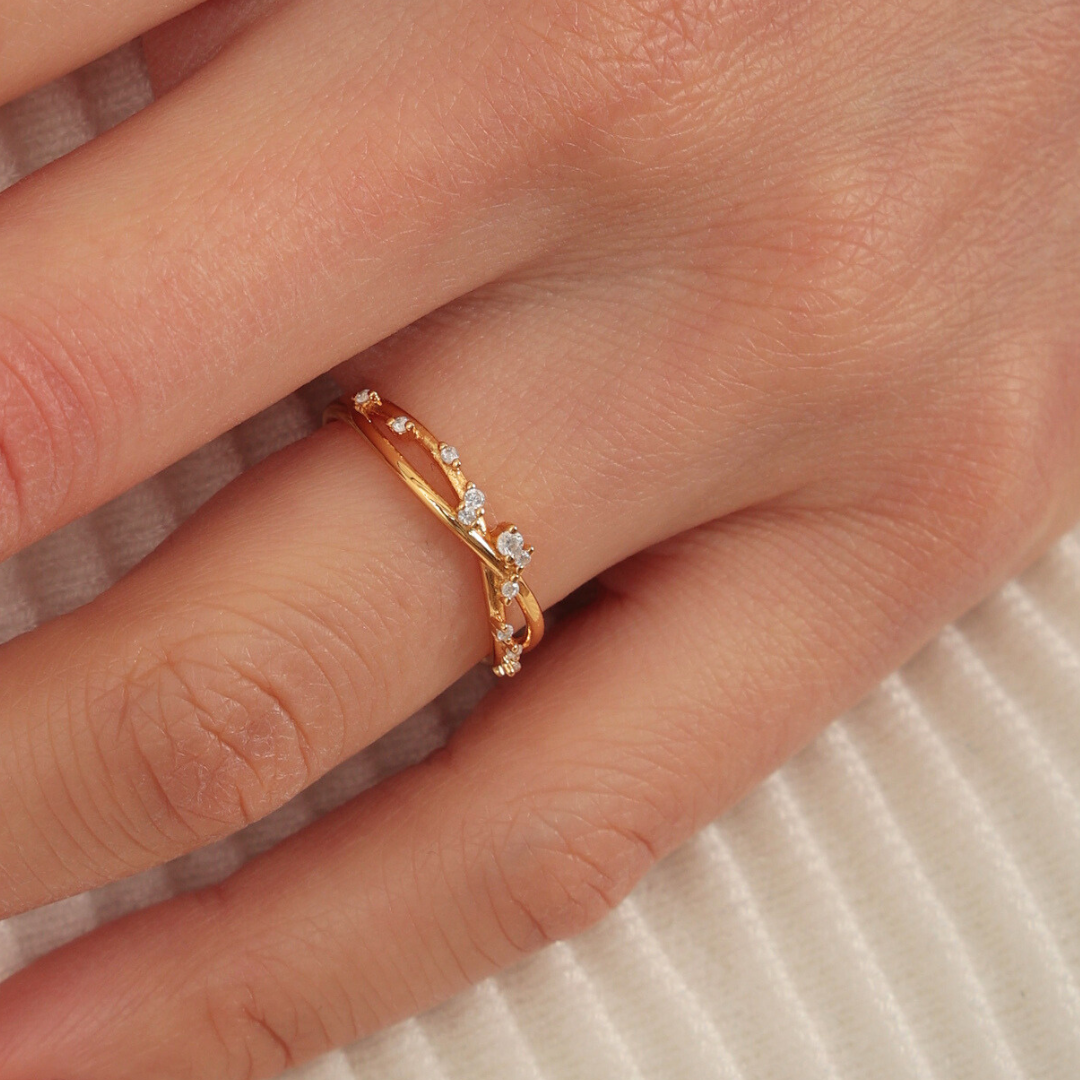 Gold Twist CZ Ring