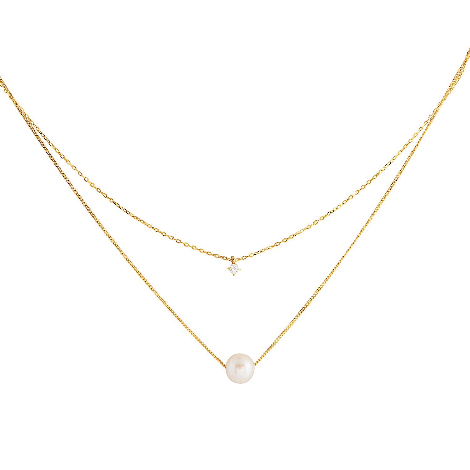 Gold Layered Necklace with Pearl and Cubic Zirconia