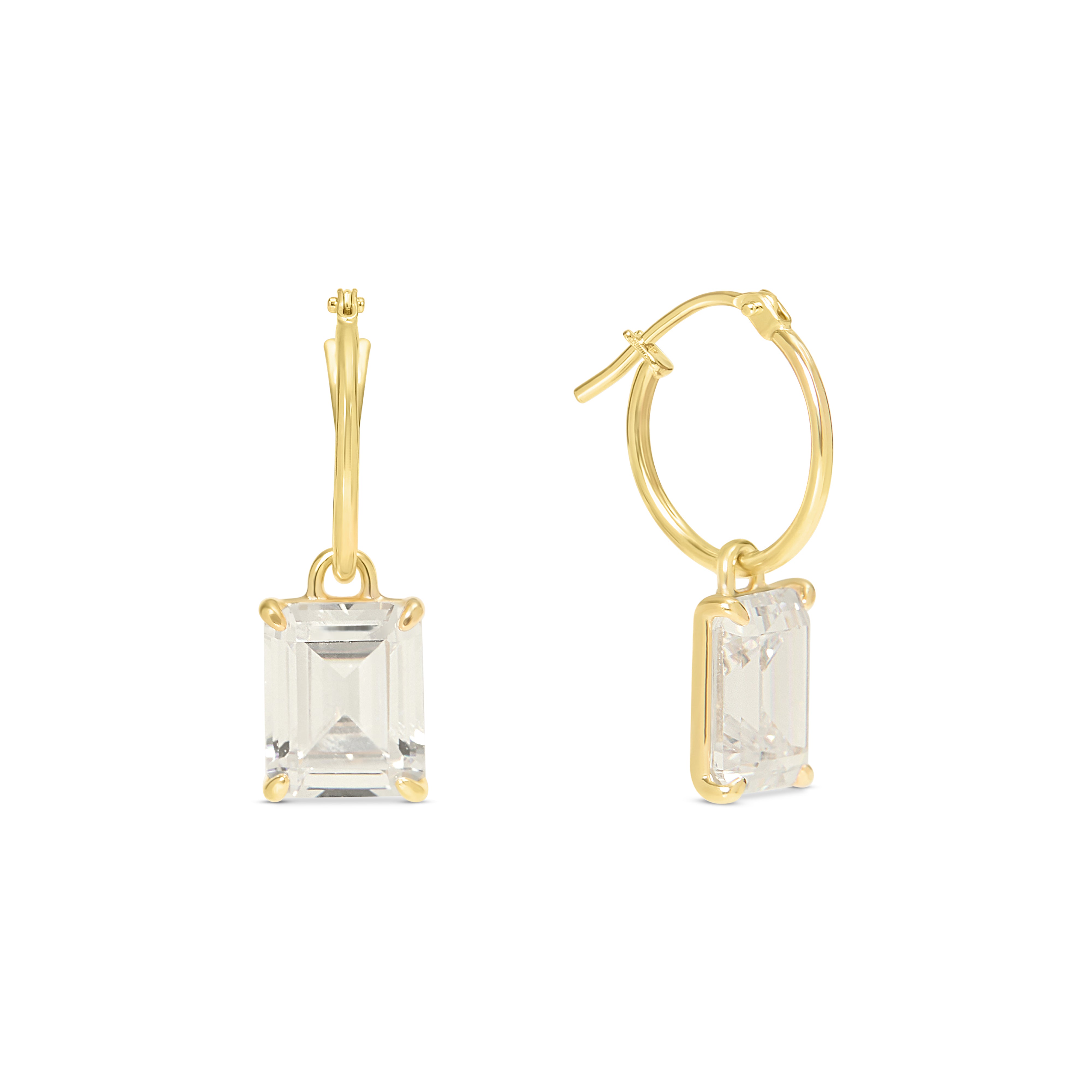 Designed for ultimate versatility, the crystal charm is easily removable—allowing you to wear them as a radiant statement drop or as classic, minimal gold hoops.
